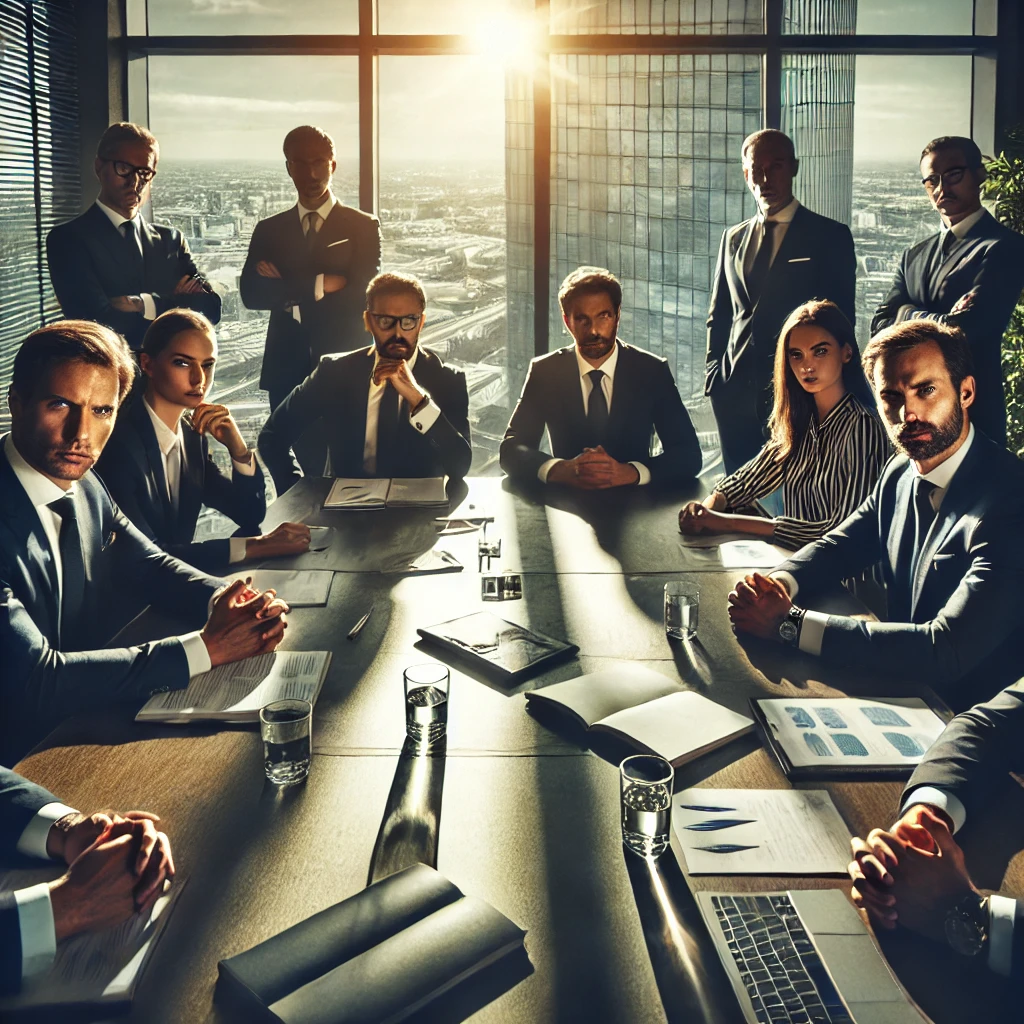 This is what OpenAI’s DALL-E thinks tough business negotiations would look like. So tough that there’s not even a packet of biscuits on the table.
